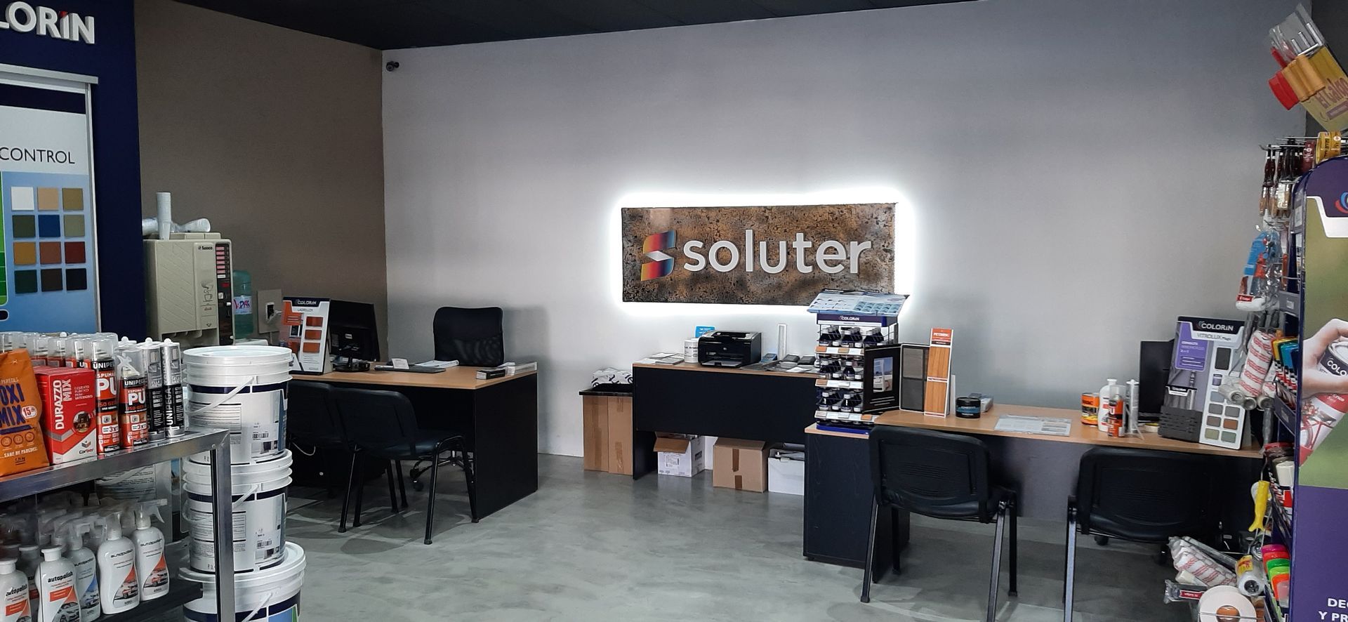 Tenemos todo en pintura, látex interior y exterior, esmaltes sintéticos, diluyentes, enduido, bases, lacas al agua y poliuretanicas, pinceles, rodillos, cintas, etc.